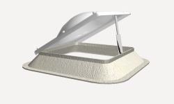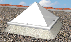 Lanterneau en coupole fixe parabolique simple vitrage, de polyméthylméthacrylate (PMMA), à base carrée, lumière d'ouverture 40x40 cm, "PLÁSTICOS Y CLARABOYAS MATILLA". Selon NF EN 1873. |
